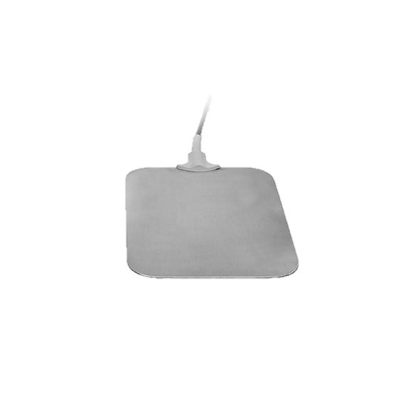 Votre deuxième électrode (plaque de retour en métal, donc conductrice) est fixe. Elle se met au contact du patient et permet de fermer le circuit électrique avec l’électrode mobile capacitive ou résistive.