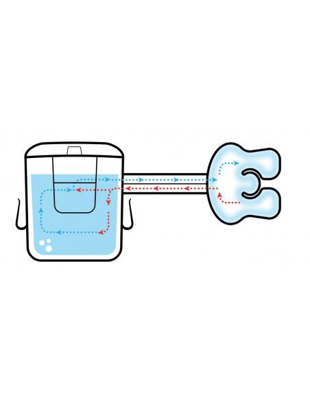 Le système de circulation de l'eau en boucle semi-fermé breveté DonJoy assure une thérapie par le froid uniforme sur toute la surface du manchon réfrigérant.