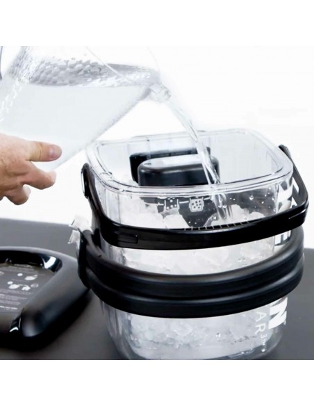 - Le refroidisseur ultra silencieux maintient le bain de glace au froid pendant 7 à 9 heures.
