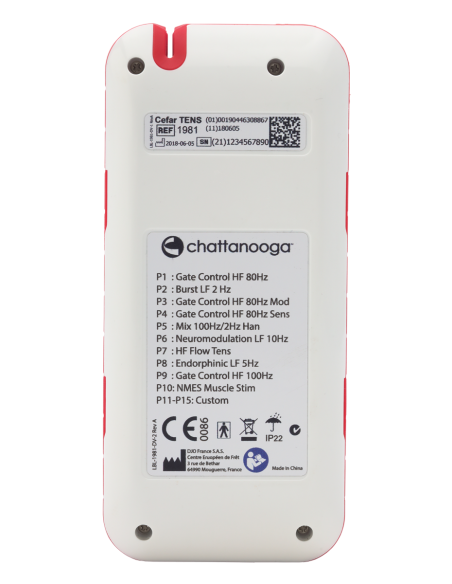 Cet appareil offre des programmes Tens permettant de traiter différents types de douleurs. Il comprend 10 programmes de traitement présélectionnés, dont Tens Conventionnel, Burst, Tens modulé (largeur d’impulsion), fréquence mixte, Cefar Flow Tens et la stimulation destinée au traitement des nausées. Il peut être utilisé en mode électro-acupuncture.