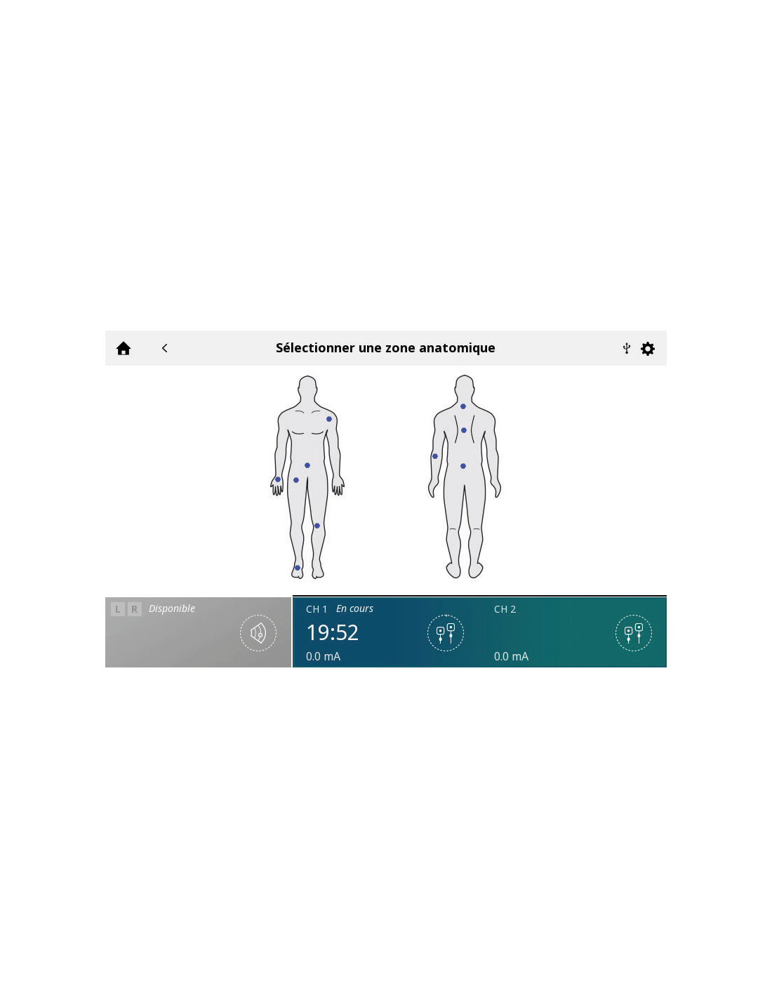 Il a un écran tactile de 7 pouces haute résolution qui permettent d’accéder à une interface utilisateur intuitive ainsi qu’à la bibliothèque anatomique pour le positionnement des électrodes et des applicateurs. Vous y retrouverez également les informations sur la progression du traitement et un résumé après la fin de la séance.