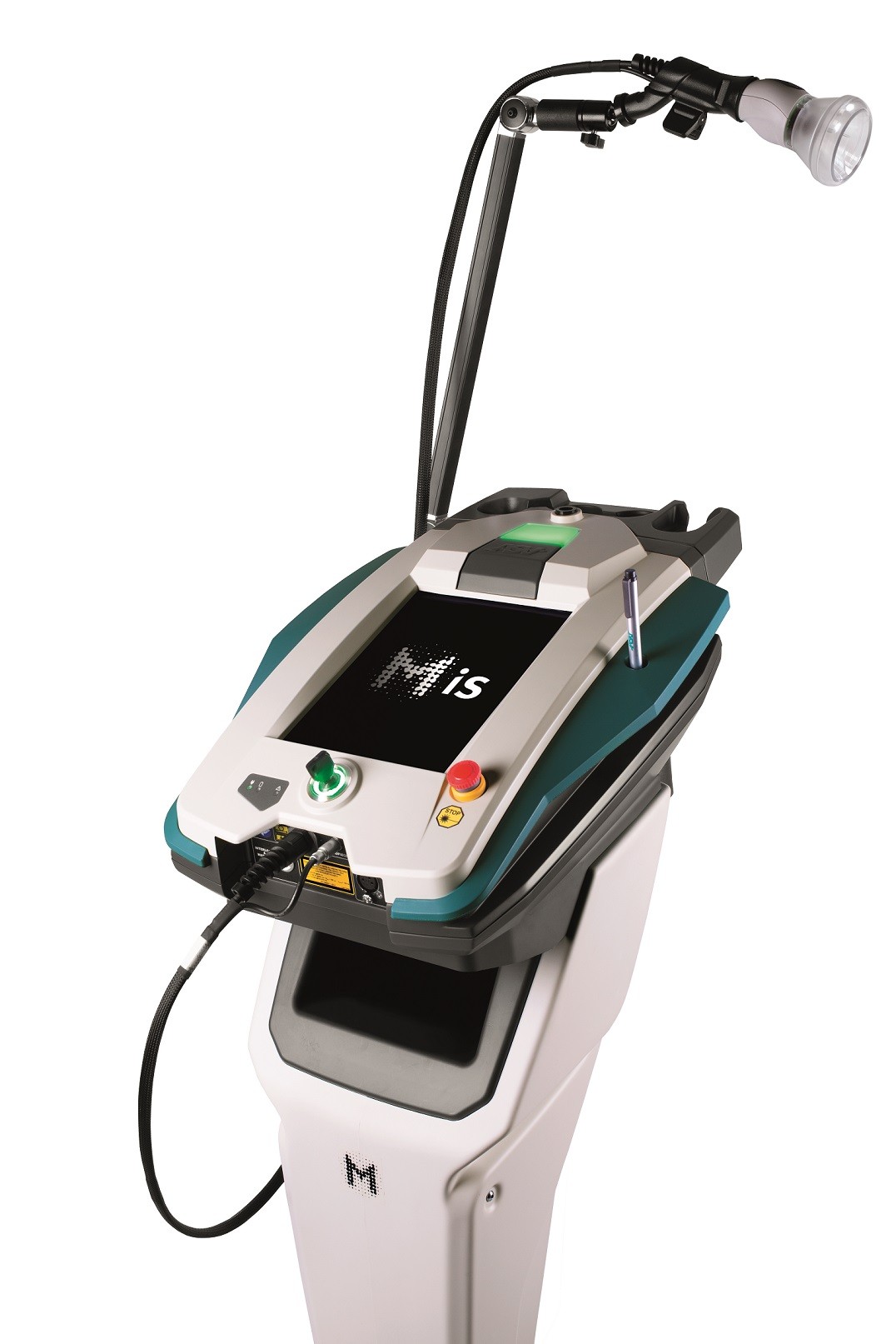 - Pièce à main ergonomique avec un bouton pour contrôler l'émission et multicolore LED pour indiquer l'état de la machine à tout moment.