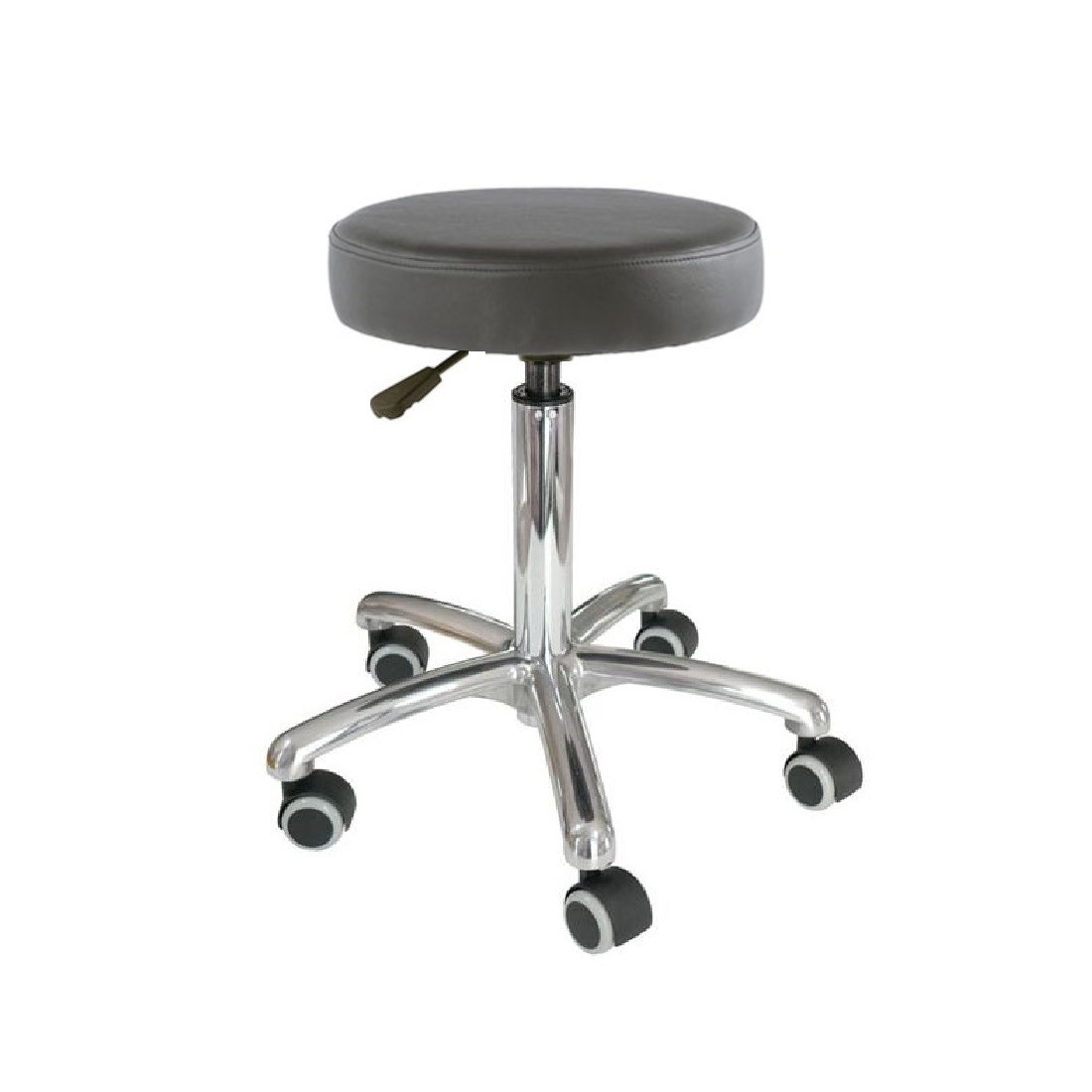 Le tabouret Disk sur roulette en piétement chromé est idéal pour les masseurs kinésithérapeutes.